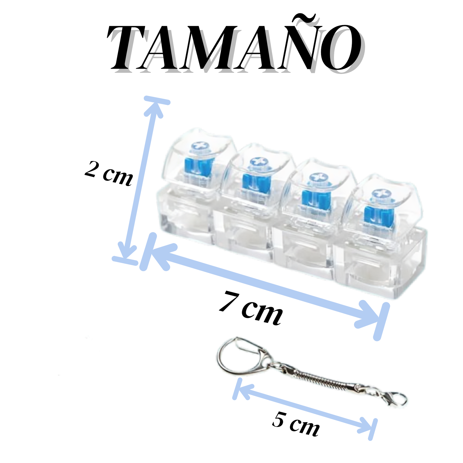 Con solo 7 cm de tamaño, el Llavero ASMR con luz LED cabe perfectamente en tu bolsillo, mochila o llaves, para que te acompañe a donde vayas.